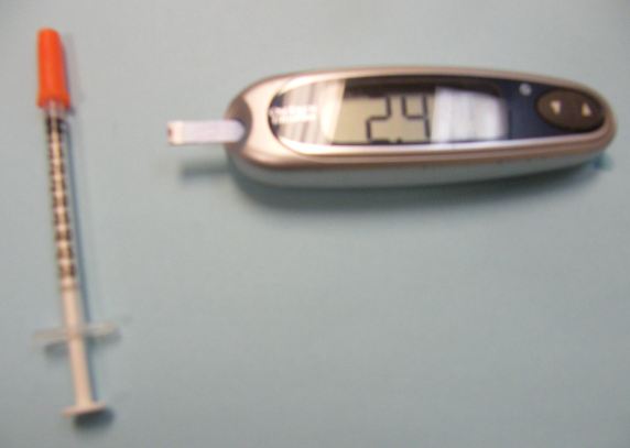 The glucometer reading is a little low but not concerning, we will check his blood glucose levels throughout surgery. Casper is given half of his regular insulin dosage today!